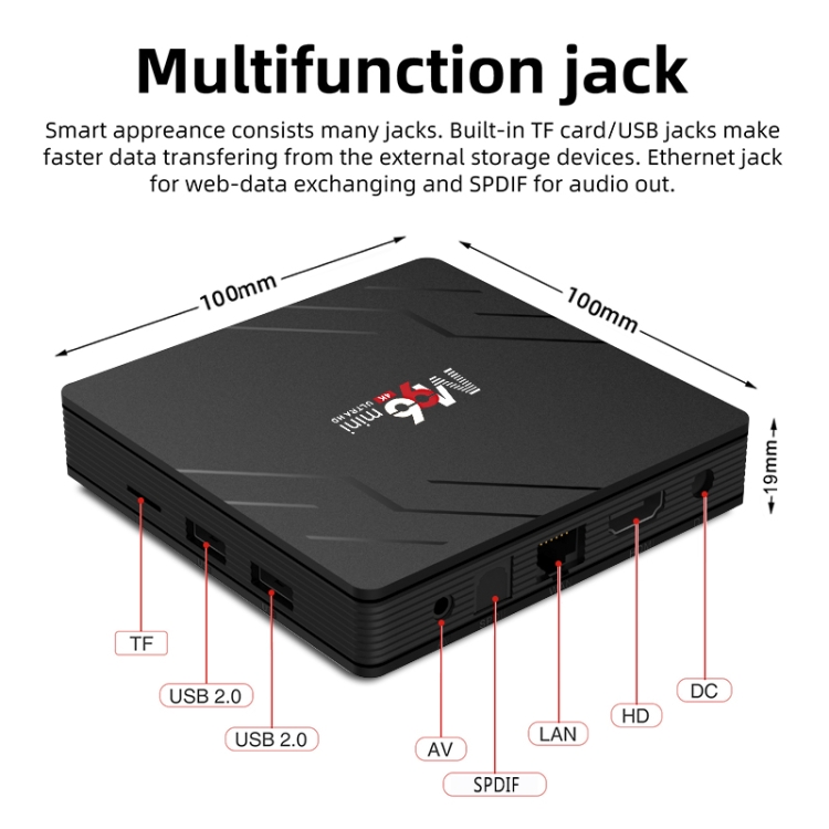 3. Port: TF card slot, 2 x USB2.0, AV, SPDIF, LAN port, HD, DC