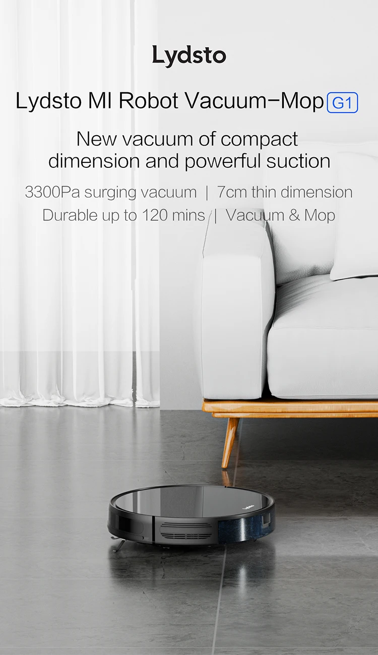 Lydsto G1 Robot Vacuum Cleaner 3300Pa Suction Household Sweeper & Mopper Wet Mopping Floor Dust Cleaner Mijia APP Control