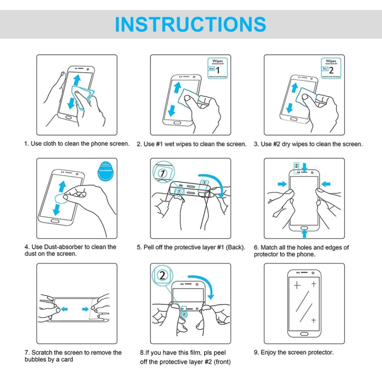 6. Convenient to use: It has super adhesion. Before sticking the protective film, all you need to do is to clean the screen thoroughly.