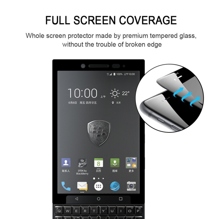 0.3mm 9H Surface Hardness 2.5D Silk-screen Full Screen Tempered Glass Film for BlackBerry KEY2