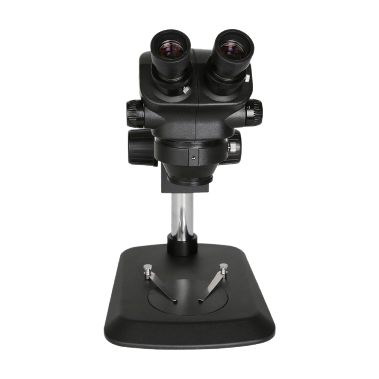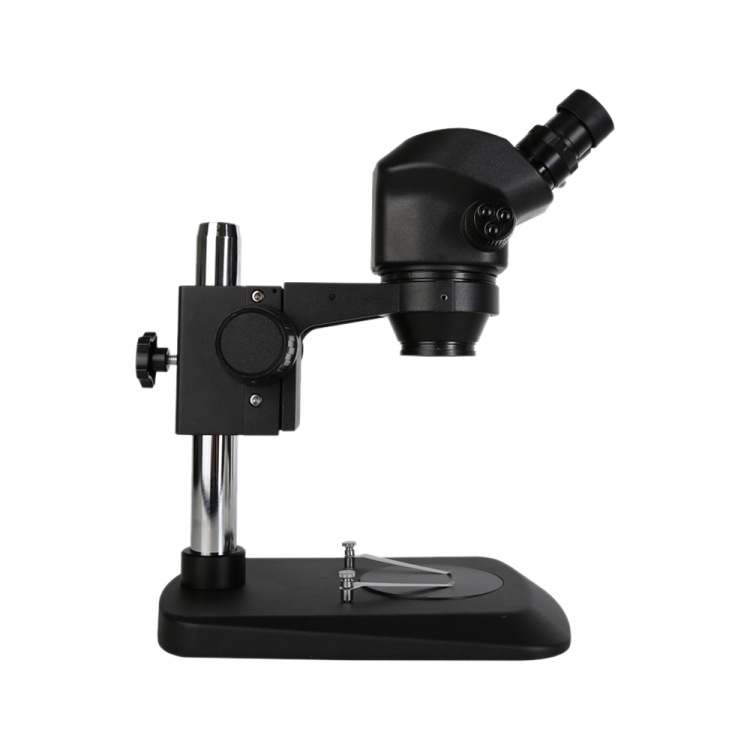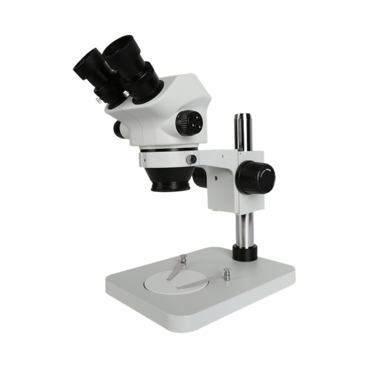 2. The professional stereo zoom microscope has a pair of 10X super-widefield high-eyepoint eyepieces, a 0.7X-4.5X zoom objective, and a single-arm boom stand, pillar stand.