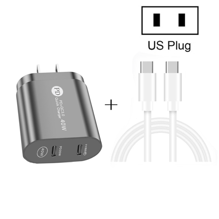002 40W PD3.0 Dual Port USB-C / Type-C Charger with Type-C to Type-C Data Cable, US Plug