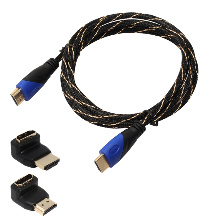 1.8m HDMI 1.4 Version 1080P Woven Net Line Blue Black Head HDMI Male to HDMI Male Audio Video Connector Adapter Cable with 2 Bending HDMI Adapter Set