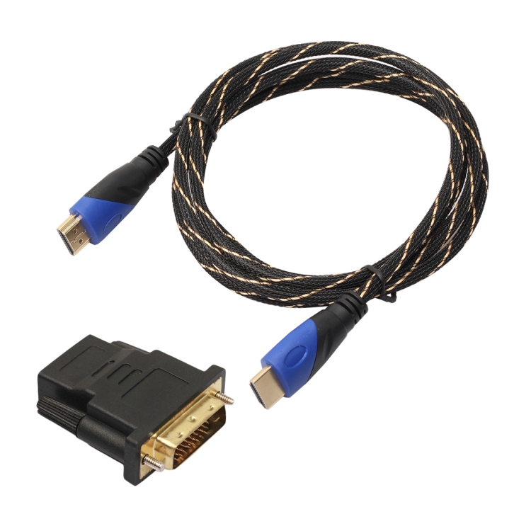 1.8m HDMI 1.4 Version 1080P Woven Net Line Blue Black Head HDMI Male to HDMI Male Audio Video Connector Adapter Cable with DVI Adapter Set