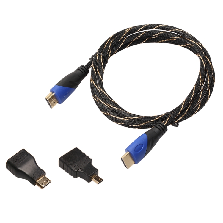 1.8m HDMI 1.4 Version 1080P Woven Net Line Blue Black Head HDMI Male to HDMI Male Audio Video Connector Adapter Cable with Mini HDMI & Micro HDMI Adapter Set