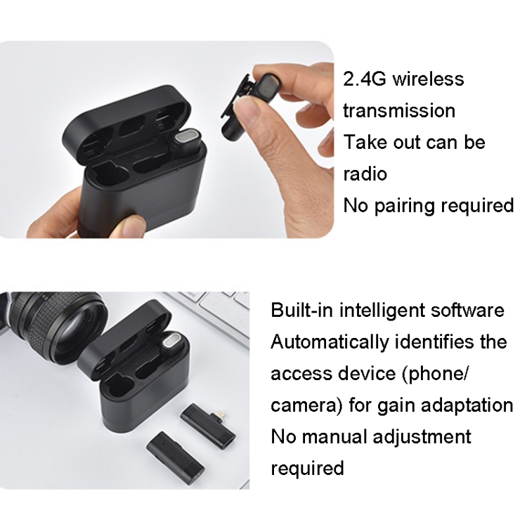 5. Built-in intelligent software, can automatically identify the access device (cell phone / camera) for gain adaptive, no manual adjustment