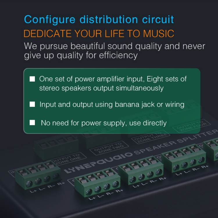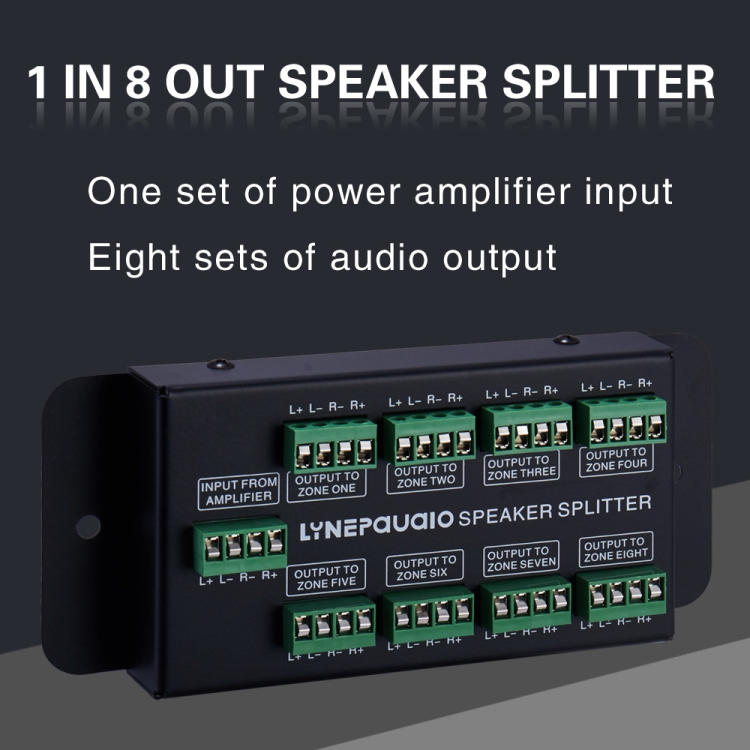1. Are you stuck with a set of power amplifier signals that need to be assigned to several speakers? Now this distribution panel can solve the problem of allocating one set of stereo inputs to 8 sets of speakers at the same time.