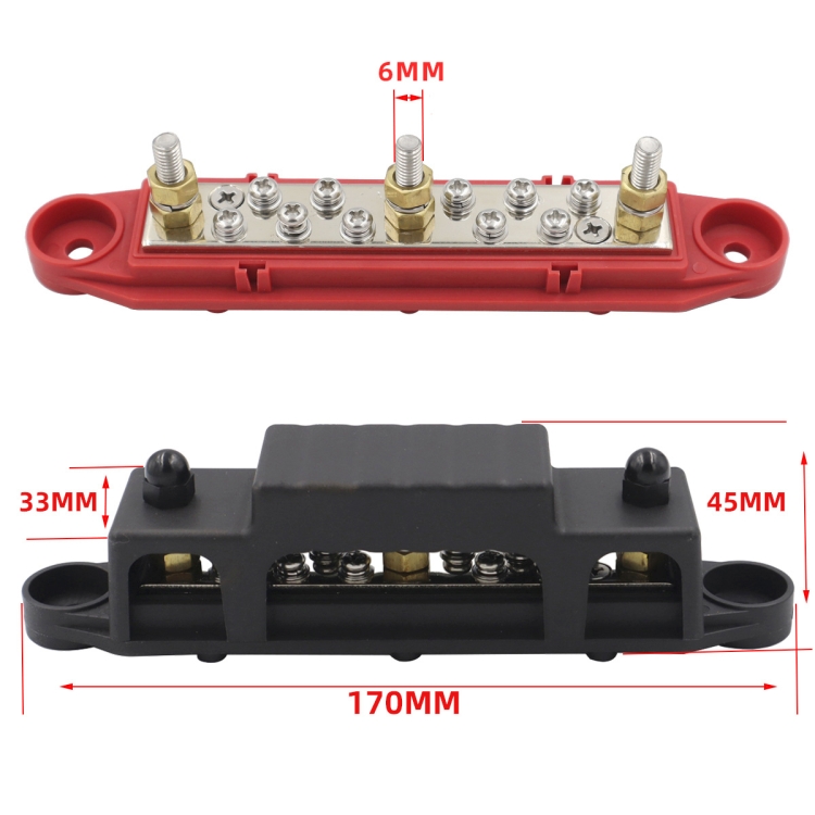 1 Pair 48V 150A M6 Power Distribution Terminal Block Battery Bus Bar Set