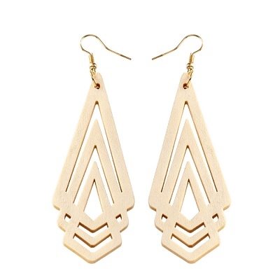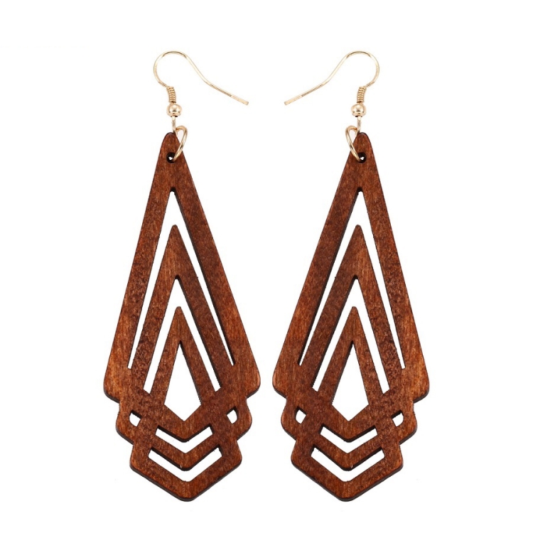 1 Pair Natural Wooden Earrings Geometic Hollow Triangle Personality Simple Fashion Jewelry For Woman