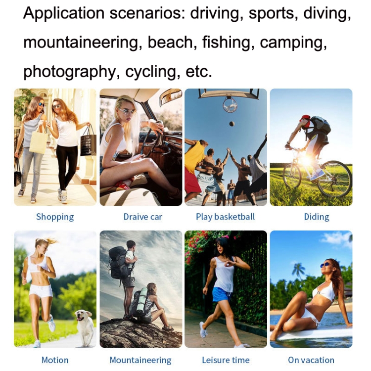 12. Application scenarios: driving, sports, diving, mountaineering, beach, fishing, camping, photography, cycling, etc.