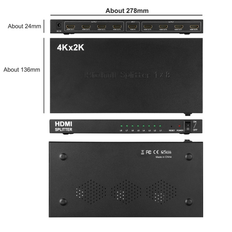 1 x 8 4K x 2K 3840*2160/30HZ HDMI Splitter