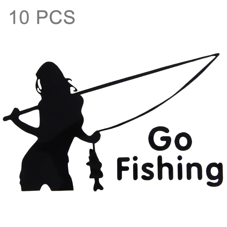 10 PCS Beauty Go Fishing Styling Reflective Car Sticker, Size: 14cm x 8.5cm