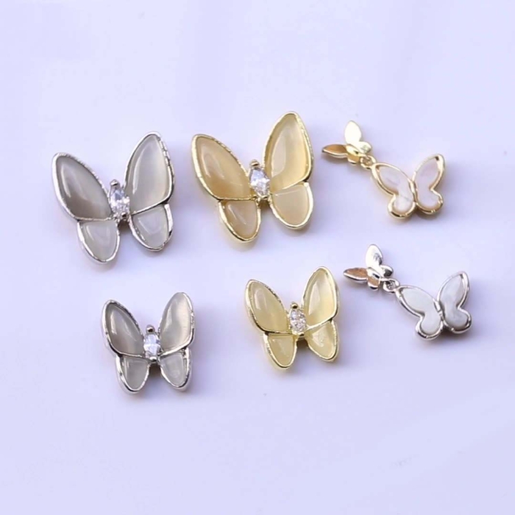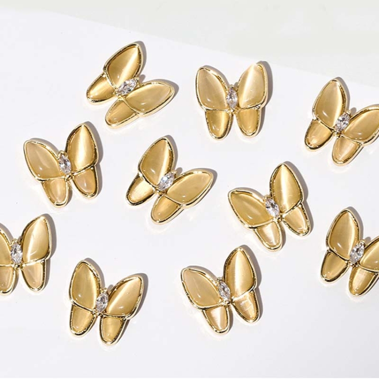 10 PCS Butterfly Nail Art Accessories Golden Three-dimensional Cat’s Eye Butterfly Zircon DIY Nail Decoration Accessories