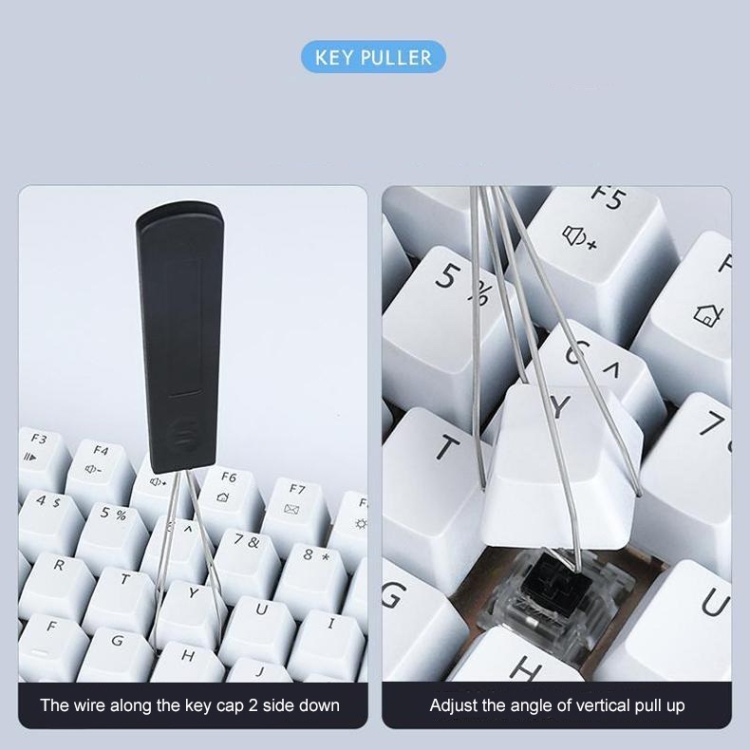6. Easy to pull the key 2 steps: the wire along the key cap 2 side down, adjust the angle of vertical pull up