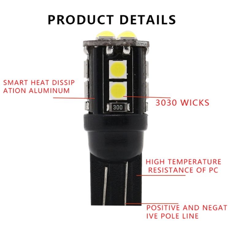 10 PCS T10/168/194 DC12V / 1W / 6000K / 60LM Car Decoding Clearance Lights with 12LEDs SMD-3030 Lamp Beads