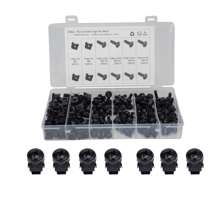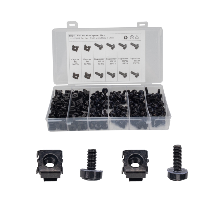 100 PCS Cage Nuts and Screw Cage Nuts M5 + Rack Screws M5x16/20