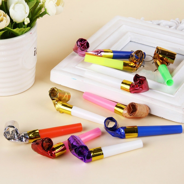 100 PCS Children Small Toy Plastic Whistle Birthday Party Cheering Small Gift Gold Paper Blowing Dragon Horn