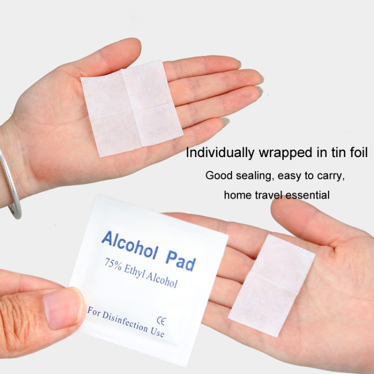 100pcs /Box Disposable Sterilized Alcohol Cotton Pads Cell Phone Tableware Sterilization First Aid Disinfection Wipes