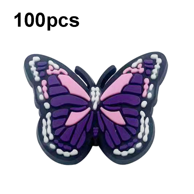 100pcs Butterfly Cartoon Shoe Flower Removable PVC Soft Rubber Cave Shoes Buckle