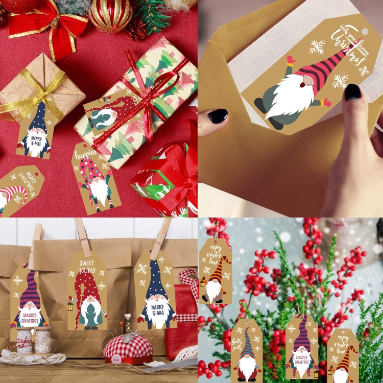 100pcs/Pack Christmas Decoration Kraft Paper Tag Card Label With Jute Twine