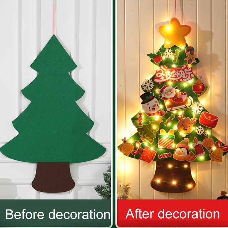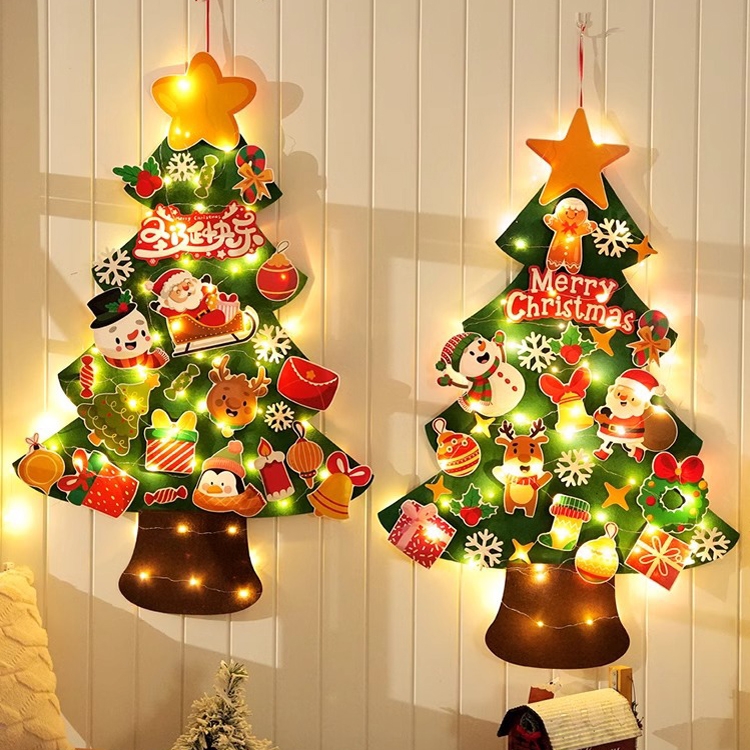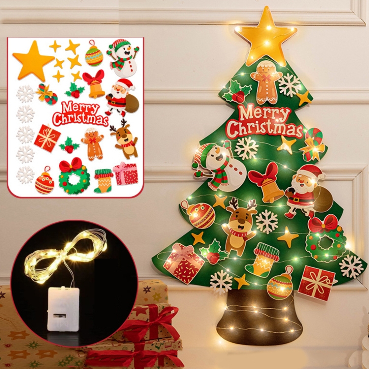 1. DIY felt Christmas tree set with 27 detachable decorations (Santa Claus, snowman, snowflake, Christmas stocking, elk, bell, etc.), perfect for Christmas party decoration, with light string.