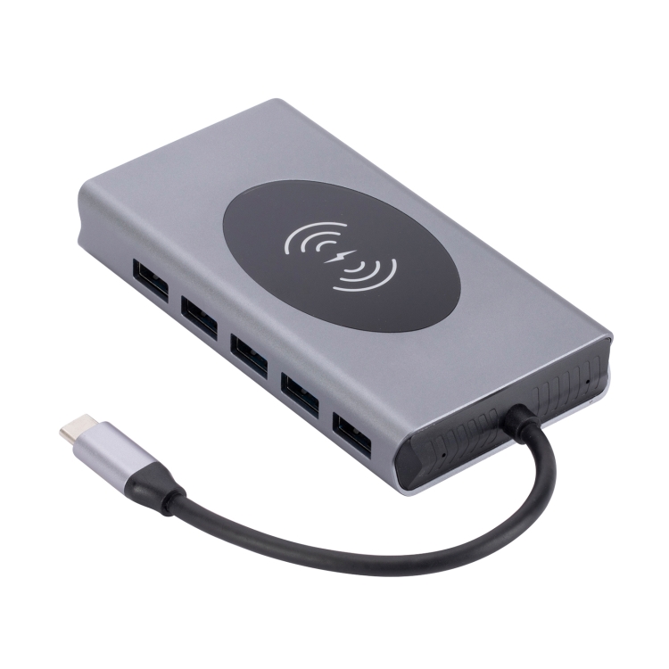 1093 13 in 1 USB HUB Type-C Docking Station with Wireless Charger Function
