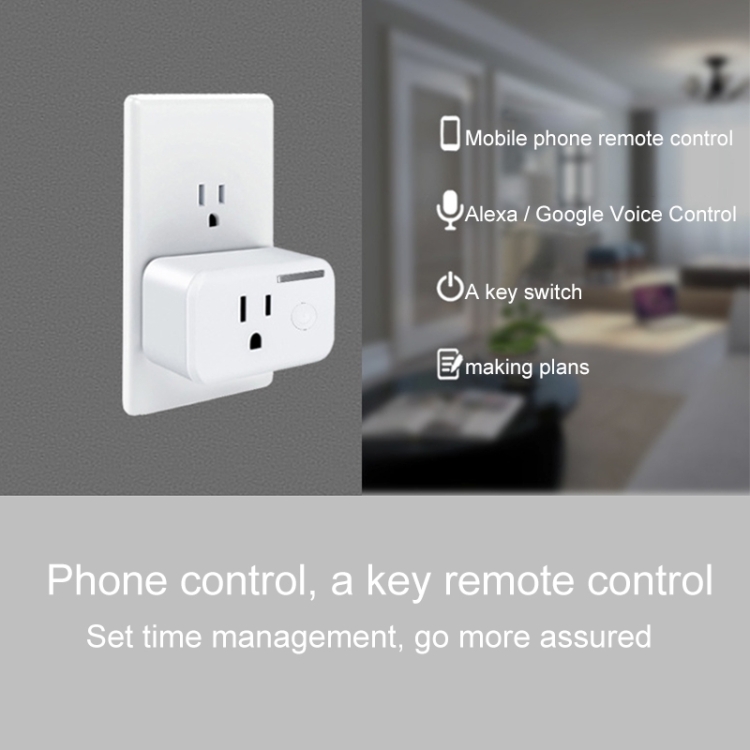 10A WiFi 2.4GHz APP Remote Control Timing Smart Socket Works with Alexa & Google Home, AC 110-250V, US Plug