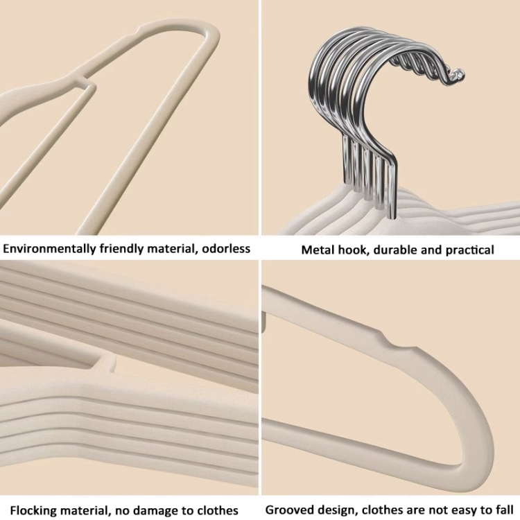 1. The wardrobe space is limited, and a special hanger should be used for long-term hanging. This flocking hanger adopts a streamlined design, saving 3 times the wardrobe space