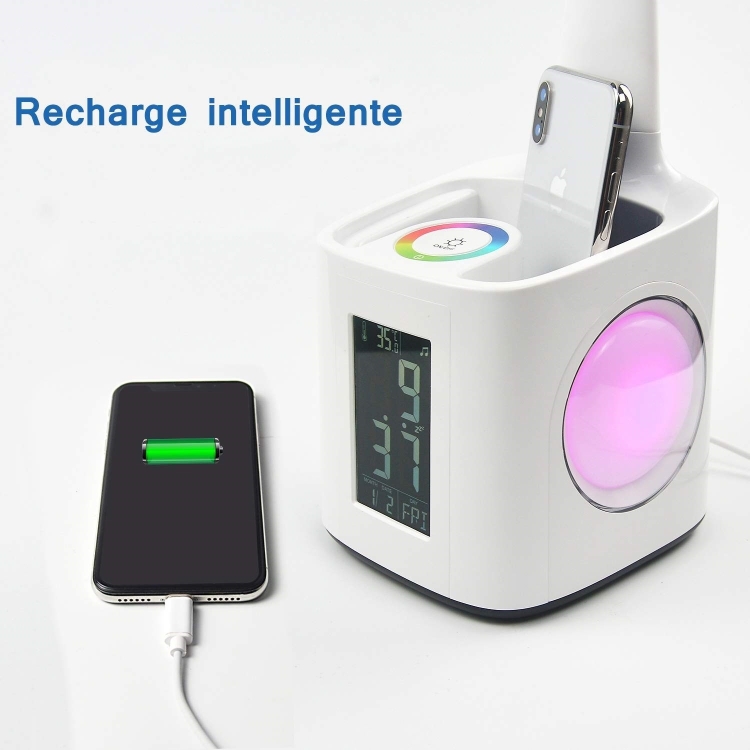 10W Touch Control 3-speed Adjustment Light DimmableEye Protection Table Lamp Coloured Night Light with Pen Holder & Alarm Clock