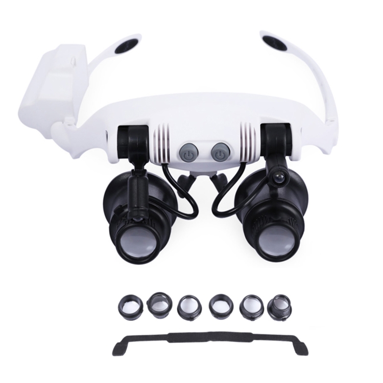 10X 15X 20X 25X Wearing Glasses Eyes Illuminated Magnifier Magnifying Watch Repairing Loupe With LED Light(White)
