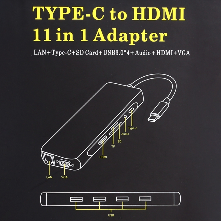 11 in 1 VGA + LAN Port + 4 x USB 3.0 + SD / TF Card + HDMI + Audio Port + USB-C / Type-C Female to USB-C / Type-C HUB Adapter