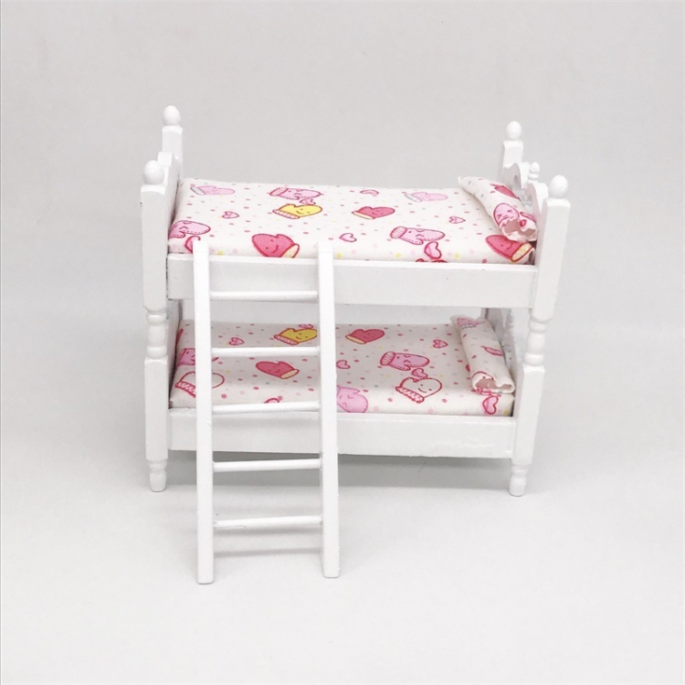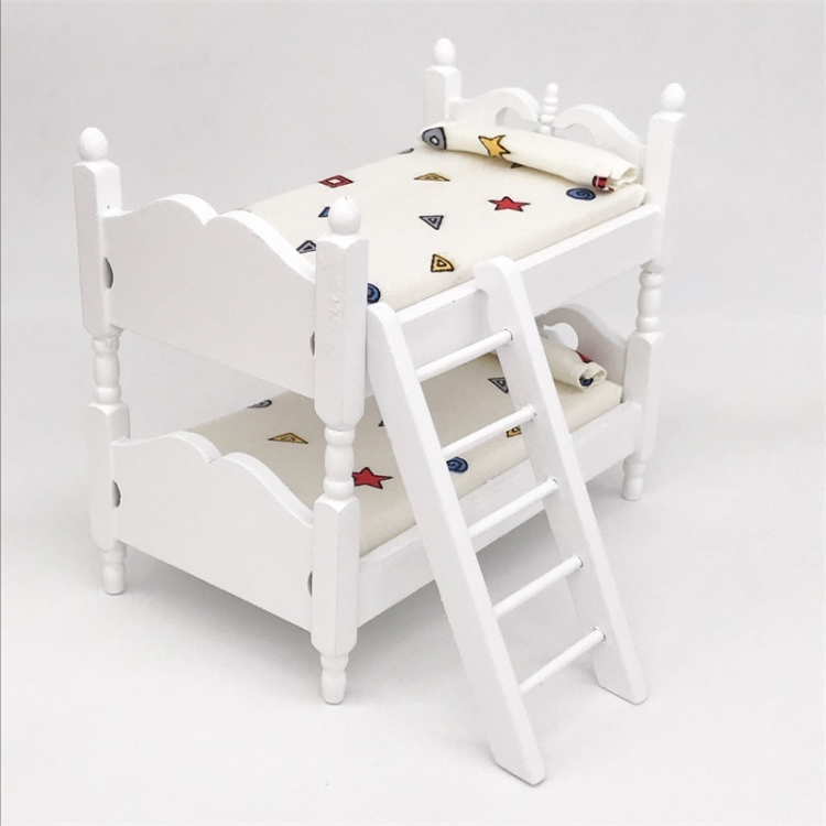 1:12 Mini House Toy Simulation Children Wooden Bunk Bed