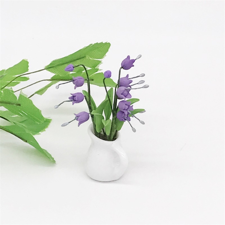 1:12 Mini House Toy Simulation White Lily with Porcelain Valley for Garden Scene Decoration