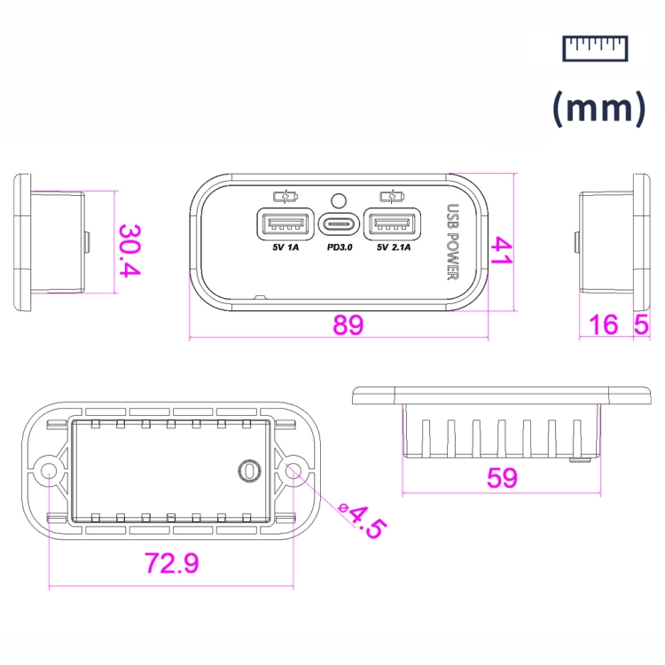 10. Mounting hole size: 30×60 mm