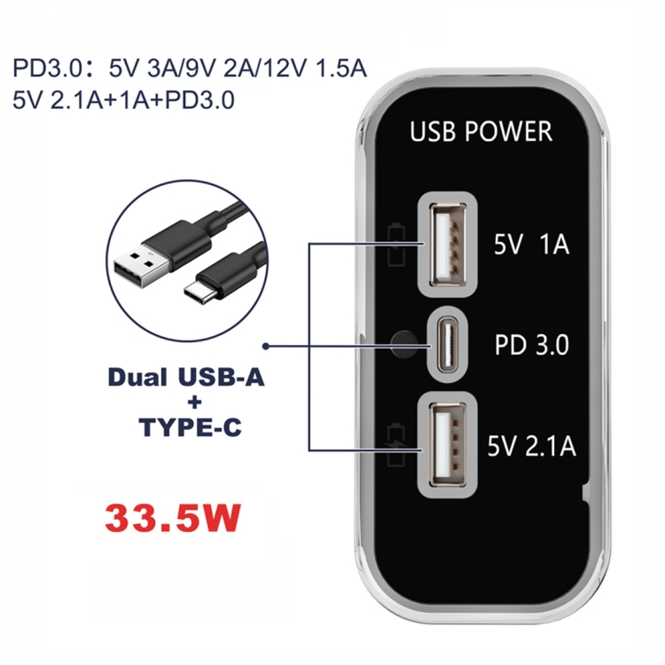 5. Charging protocol: PD3.0: 5V 3A/9V 2A/12V 1.5A; 5V 2.1A+1A+PD3.0
