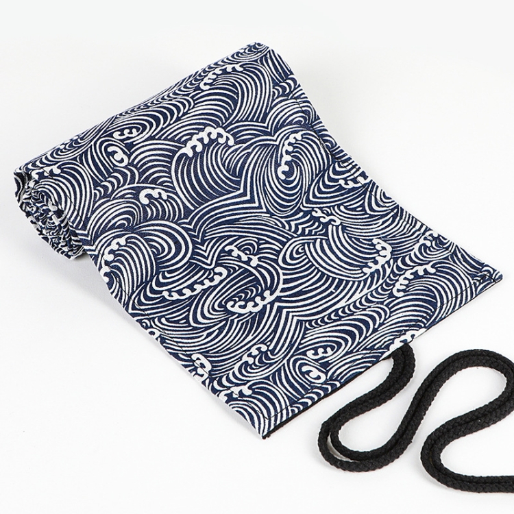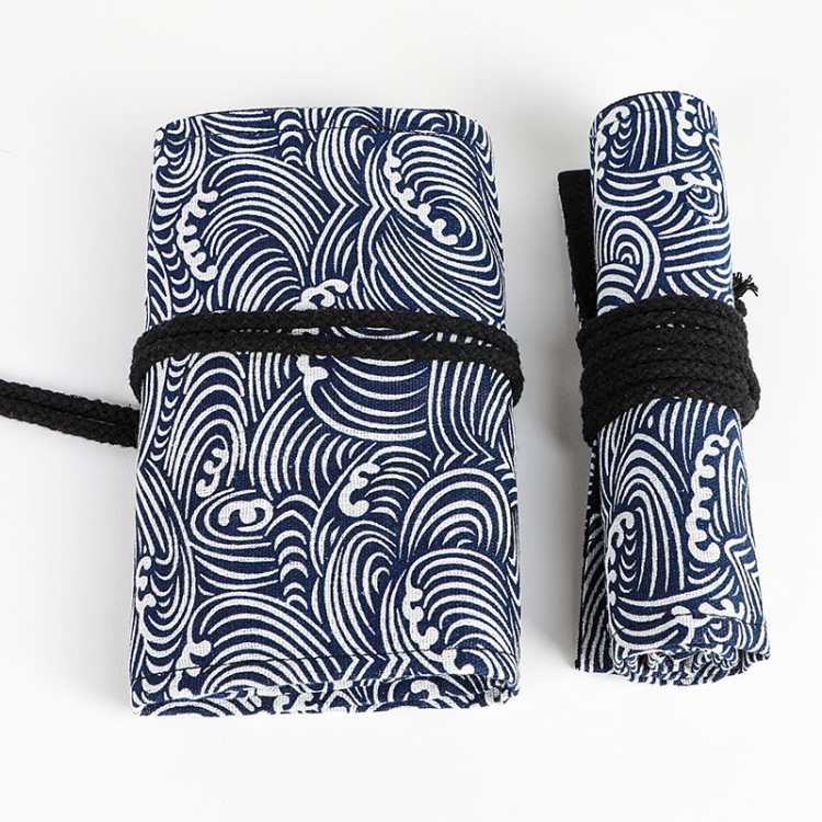 12 Holes Small Waves Printed Canvas Pen Curtain Large Capacity Roller Pen Bag Sketch Color Pencil Stationery Box