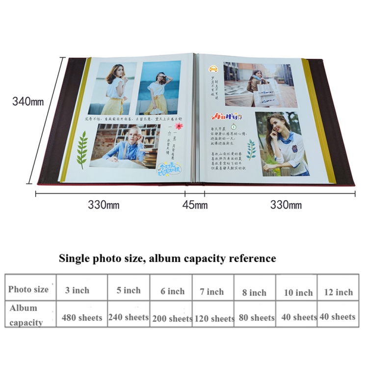 12-Inch 20-Page/40P Leather Cover Photo Album Commemorative Growth Book Retro Laminated Self-Adhesive DIY Photo Album
