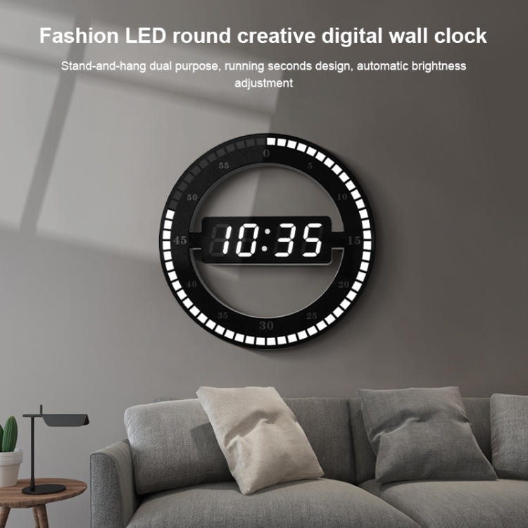 12 Inch Simple LED Ring Round Clock Mute Digital Electronic Clock