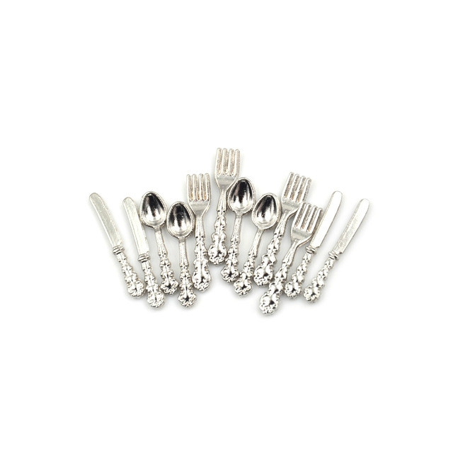 12 PCS / Set Simulation Kitchen Food Furniture Toys Dollhouse Miniature Accessories 1:12 Fork Knife Soup Spoon Tableware