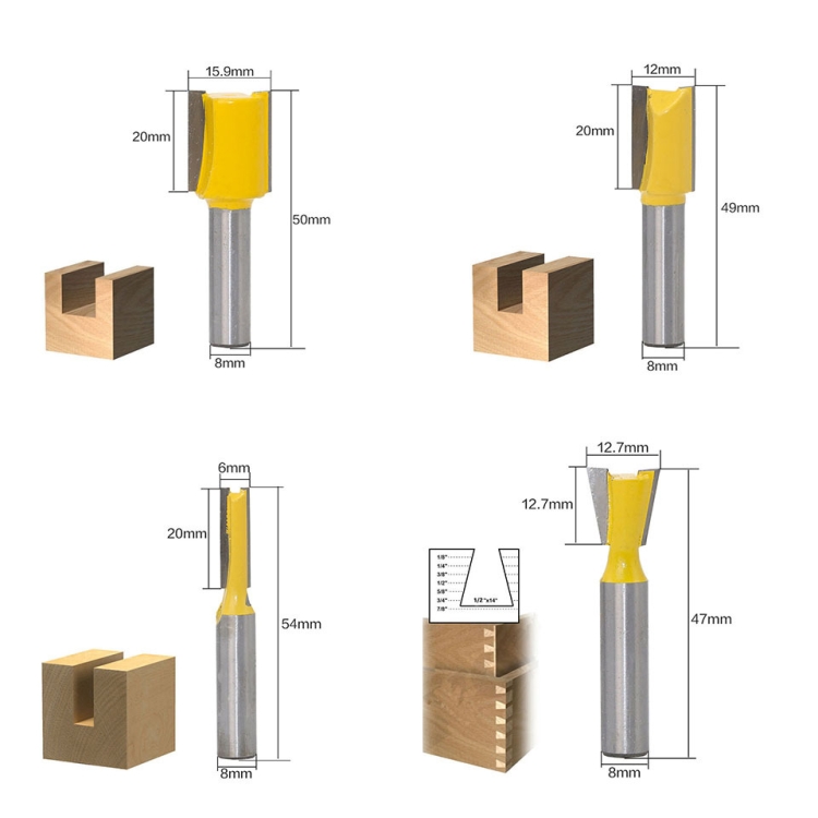 12 PCS / Set Woodworking Engraving Machine Trimmer Cutting Tool
