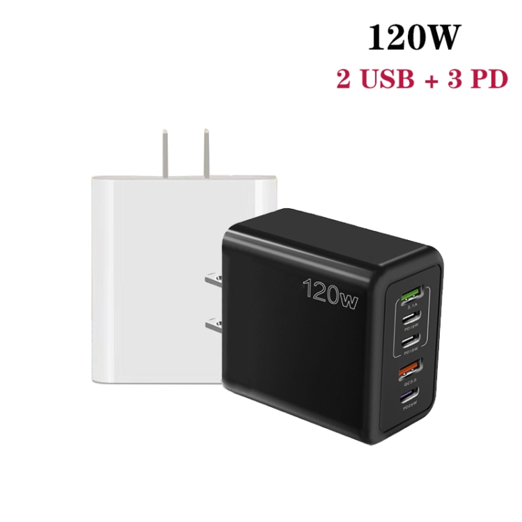 120W 3 PD Type-C Dual USB Multi Port Quick Charger for Mobile Phones, US Plug
