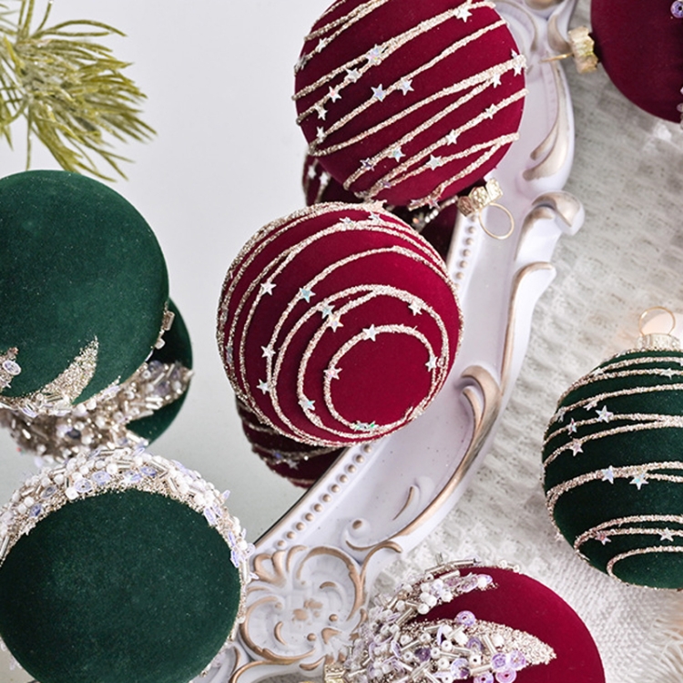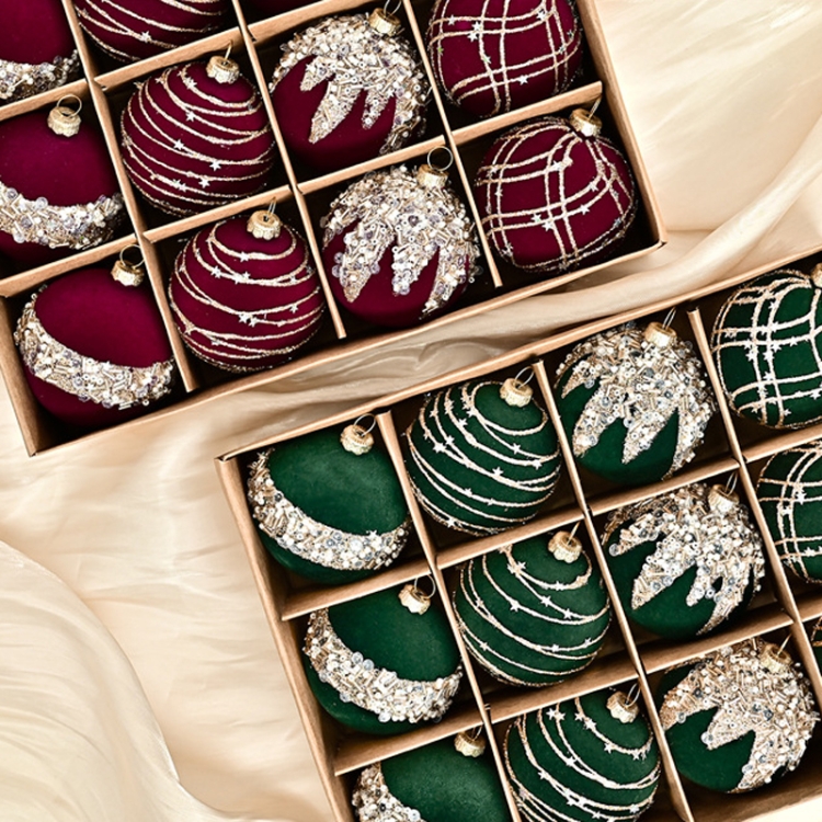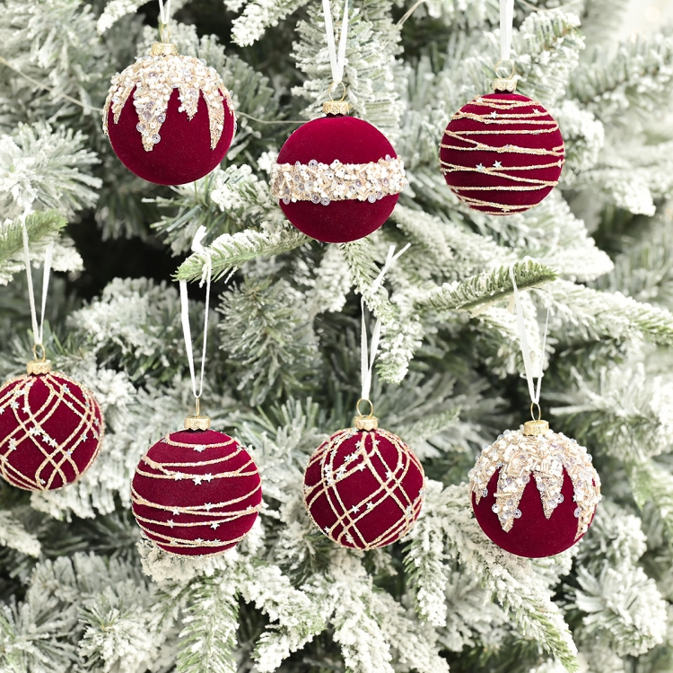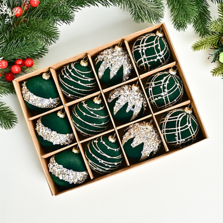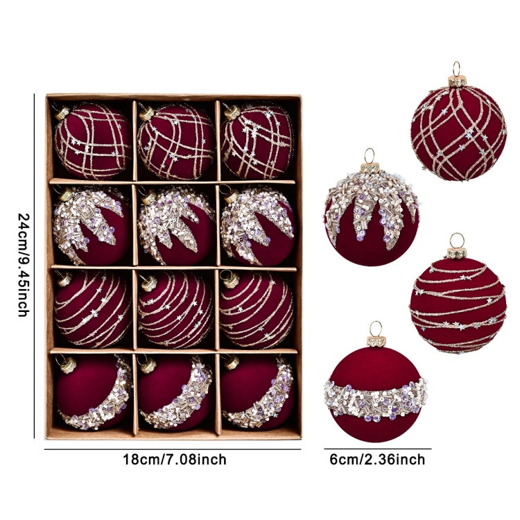 12pcs /Box 6cm Diamond Flocked Christmas Balls Painted Christmas Tree Ornaments