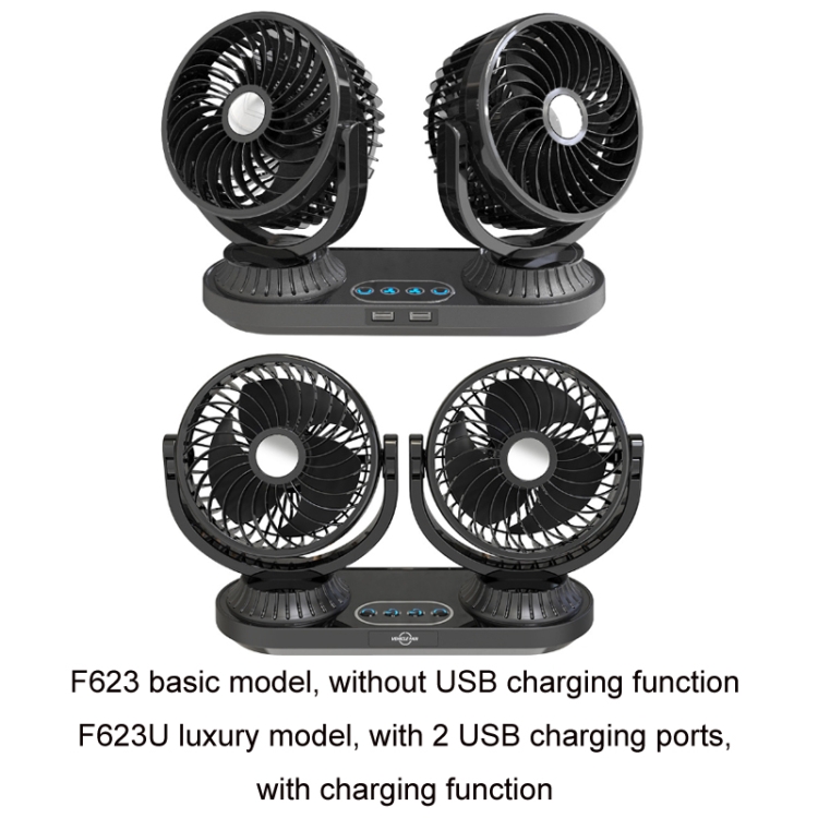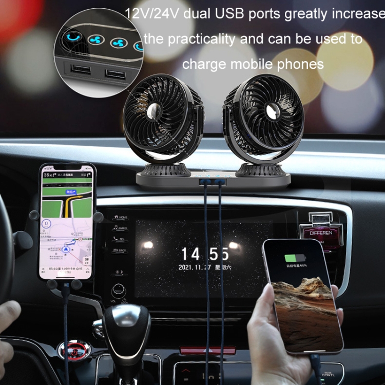 12V/24V Vehicle Electric Oscillating Head Rotatable Double Head Fan