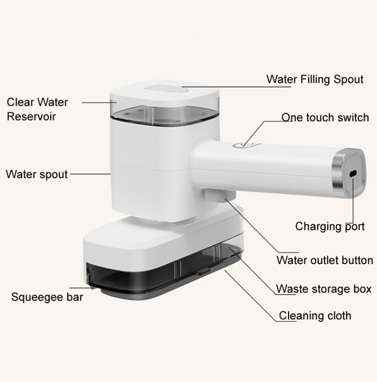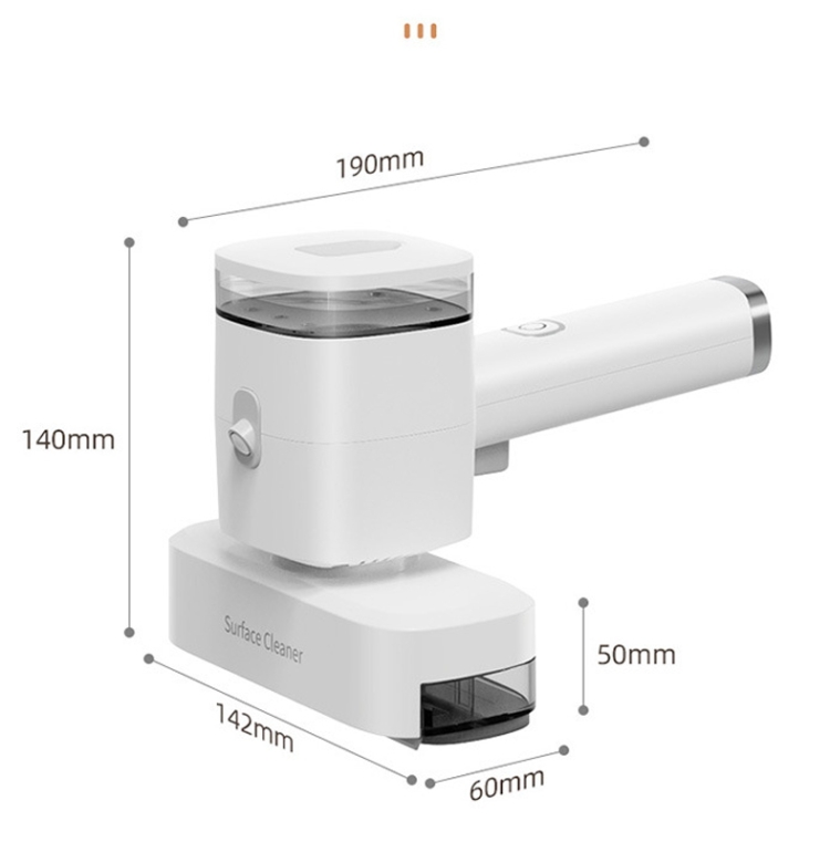 1. Functions: vacuuming and dusting, one-touch water spray, cleaning scraper, wet and dry use