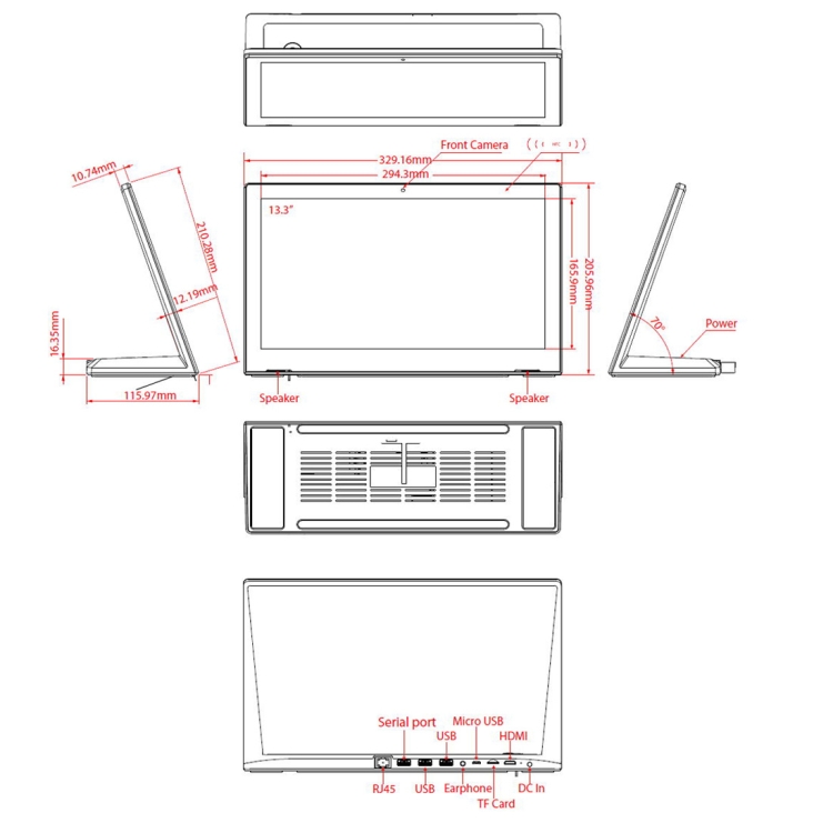 13.3 inch IPS Display Digital Photo Frame, RK3288 Cortex A17 Quad Core up to 1.5GHz, Windows 8.1, 2GB+16GB, Support WiFi & Bluetooth & Ethernet & TF Card & HDMI & 3.5mm Jack