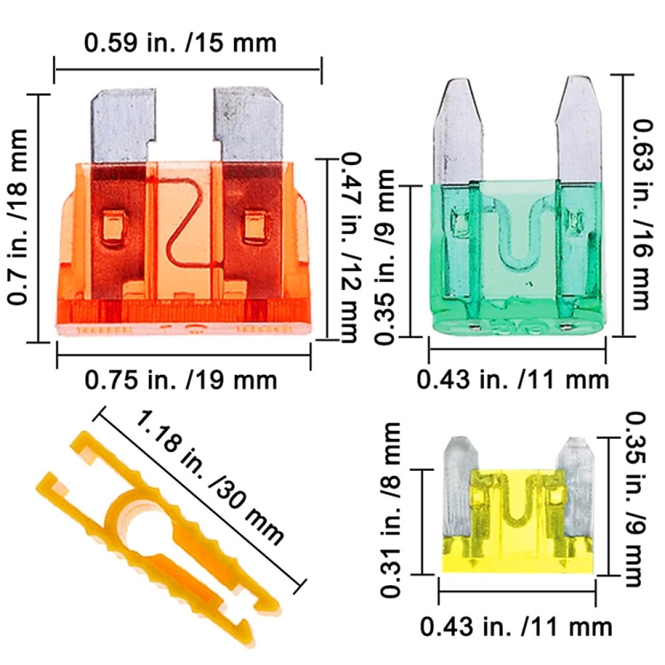 1. Contains 14 common fuses: standard and mini.