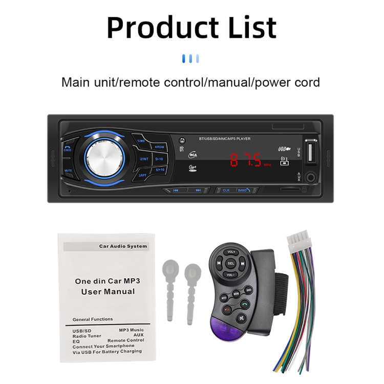 4. Bluetooth function, turn on the mobile phone and use Bluetooth to search for CAR-BT or bt-mp3, etc., after searching, click to connect, enter 0000, and some can be used without a password. Press the MODE button to switch to the BT interface, and then open the mobile player to play music, you can play mobile music.