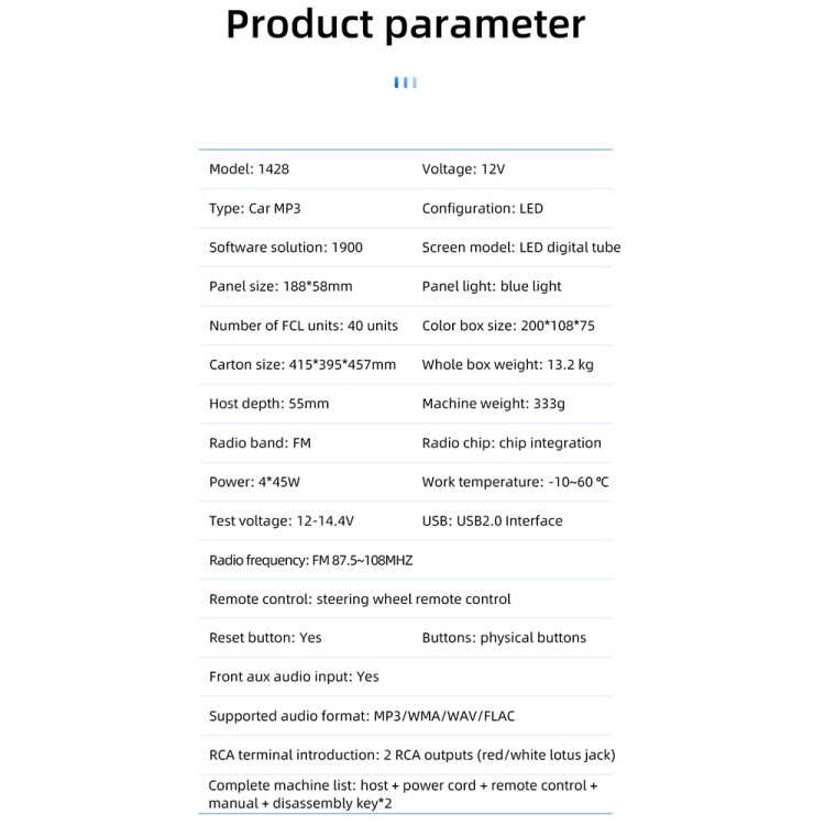 Supported audio format: MP3/WMA/WAV/FLAC