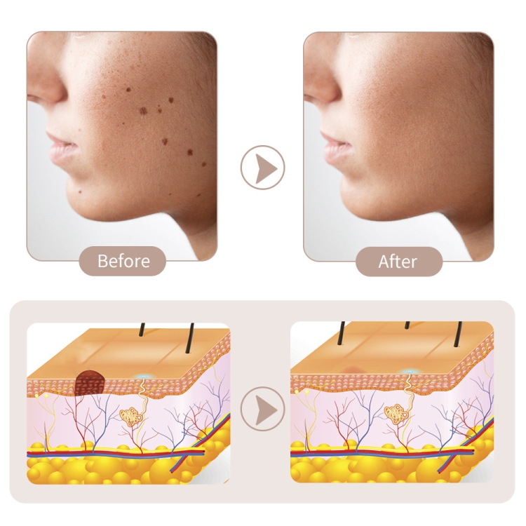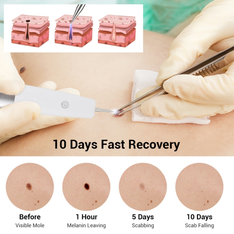 2. Ionization carbonization technology, the use of plasma thermal effect, the tip of the pen in contact with the skin, resulting in high temperature ionization carbonization of the skin on the mole