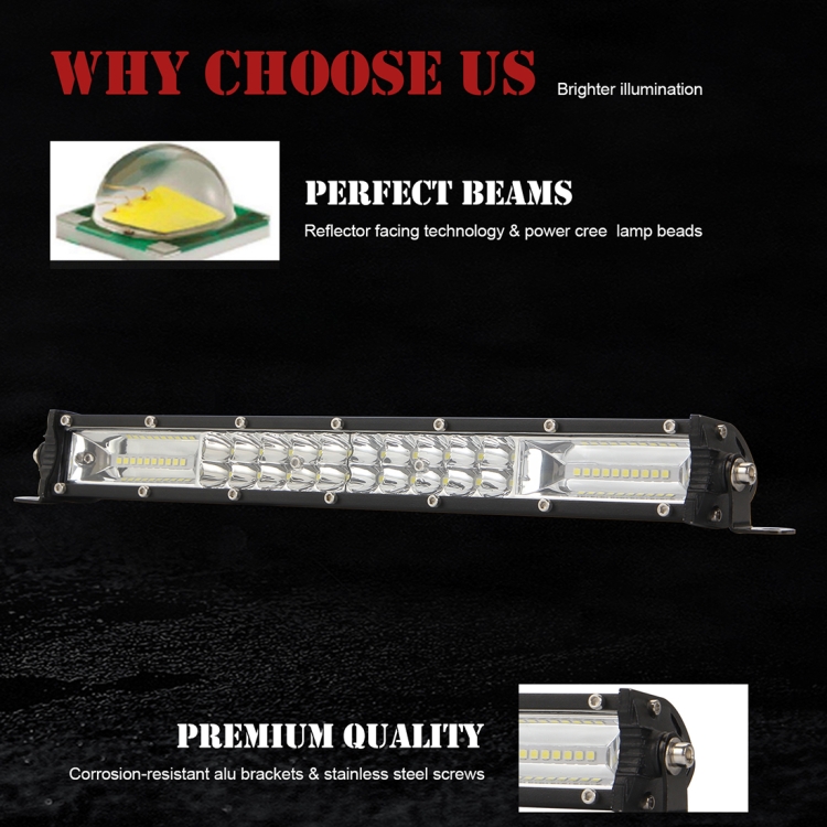 3. Better heat dissipation: In order to obtain the best heat dissipation effect, our LED light bar adopts aviation aluminum alloy as the shell, which can achieve the best heat dissipation and the best heat sealing. The sharp aluminum fan design makes it faster and more efficient. It extends the life of the light bar by more than 50,000 hours.